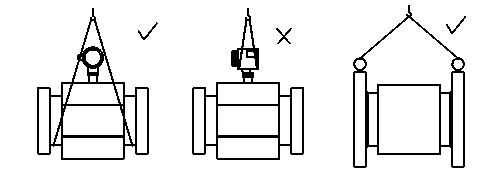水流量計(jì)應(yīng)采用正確吊裝方法進(jìn)行吊裝,吊裝設(shè)備的安全載荷及防護(hù)措施應(yīng)符合有關(guān)規(guī)定。禁止在轉(zhuǎn)換器箱體(一體式流量計(jì))或接線盒(分離型流量計(jì))處用繩拴接起吊儀表。