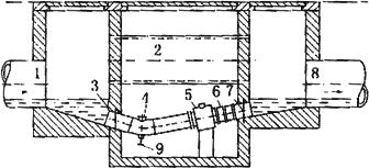由于大口徑管道在多數(shù)場合下是埋在地下的,因此大口徑傳感器在安裝前應做好水泥地坑。圖6-19所示是在給排水系統(tǒng)中常見的安裝形式。水泥地坑應有足夠的活動空間,側(cè)壁埋有敷設(shè)電纜的鋼管,上有蓋板防止雨淋,下有泄水管以免坑內(nèi)積水而使傳感器侵水。為了拆裝方便,傳感器應放在墊腳上,且在下游側(cè)裝有活絡的伸縮管。圖6-20是熱水流量計在地下水泥管污水排放系統(tǒng)中的安裝實例。