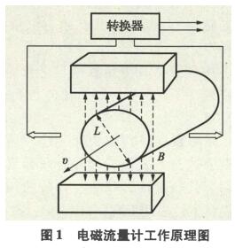 管道地下水流量計是利用法拉*電磁感應定律測量,如圖1所示,用于測量電*與運動的流體構成的回路中產(chǎn)生的電參數(shù),并根據(jù)公式換算成流體速度,再測量流通截面液位高度得到流通面積,兩者相乘得到所測流量。