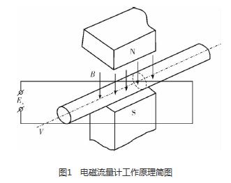 硝酸管道流量計是利用法拉*電磁感應定律設計的流量測量儀表,用于測量導電液體的體積流量。根據(jù)法拉*電磁感應定律,當導體切割磁力線運動時,導體內(nèi)將產(chǎn)生感應電動勢Ex(圖1),方向根據(jù)右手定則確定,感應電動勢Ex的大小與磁場的磁感應強度B、傳感器管道的內(nèi)徑D和流過導電液體的流速V成正比,B、D、V三者相互垂直,即Ex=BDV。