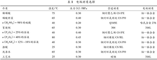 防腐型電磁流量計電*的選擇至關(guān)重要。電*應滿足被測介質(zhì)腐蝕特性,同時不能產(chǎn)生電化學反應干擾。常用電*材質(zhì)主要有:不銹鋼 316L、哈氏合金 C、鈦、鉭、鉑、鉑-銥合金等。本裝置中防腐型電磁流量計電*材質(zhì)的選擇見表 1。