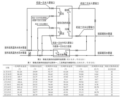 此熱力站電廠煙氣流量計(jì)的一次網(wǎng)設(shè)計(jì)供回水設(shè)計(jì)溫度為 :120℃ /36℃,二次網(wǎng)設(shè)計(jì)供回水溫度為 :80℃ /60℃。在電廠煙氣流量計(jì)工作流程中(見(jiàn)圖2),高溫?zé)嵩矗匆淮尉W(wǎng)供水)先進(jìn)入電廠煙氣流量計(jì),發(fā)生器作為驅(qū)動(dòng)熱源,換熱后進(jìn)入板式換熱器,經(jīng)板式換熱器換熱后的低溫水再次回到電廠煙氣流量計(jì)的蒸發(fā)器,放熱至36℃后返回電廠。熱用戶的二次網(wǎng)回水并聯(lián)后分別進(jìn)入電廠煙氣流量計(jì)吸收器和板式換熱器,在吸收器和冷凝器及板式換熱器中分別進(jìn)行熱交換,然后一起供給熱用戶。上述過(guò)程就是在電廠煙氣流量計(jì)啟動(dòng)時(shí),熱力站內(nèi)的實(shí)際供熱流程,在供暖季的初期和末期,可以關(guān)閉電廠煙氣流量計(jì),仍然利用板式換熱器單好換熱。