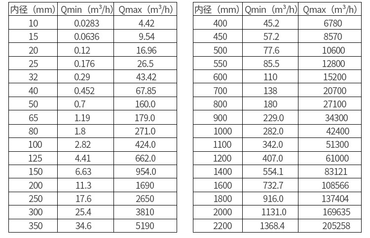 五、流速、口徑、流量關(guān)系計算器