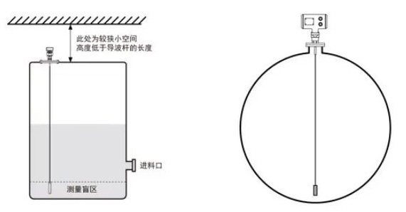 ◆接管過長的工況,喇叭天線的雷達(dá)可選擇加長型天線測(cè)量。高頻雷達(dá)如接管過長,可通過加長傳感器測(cè)量。