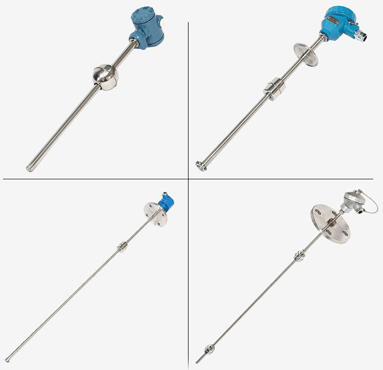 浮球液位變送器由液位傳感器和電流轉(zhuǎn)換器兩部分組成,磁性浮球比重小于0.5,可漂浮于液面之上并沿導(dǎo)桿上下移動,導(dǎo)桿內(nèi)裝測量元件,在外磁場作用下產(chǎn)生正比于液位變化的電阻信號,浮球與液位同步變化,控制干簧管吸合斷開,從而使傳感器內(nèi)電阻成線性變化,再由轉(zhuǎn)換器將電阻的變化轉(zhuǎn)換成4~20mA標(biāo)準(zhǔn)電流信號并疊加數(shù)字信號輸出。能對開口、密閉容器或地下池槽里的介質(zhì)液位在儀表控制室內(nèi)進行顯示、報警和控制。被檢測的介質(zhì)可為水、油、酸、堿、工業(yè)污水等導(dǎo)電及非導(dǎo)電液體,并能克服液體的泡沫所造成的假液位的影響。廣泛適用于煉油、化工、造紙、食品及污水處理等行業(yè)。