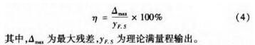 本文采用*小二乘法進(jìn)行線性度評定,即擬合直線為*小二乘直線。*小二乘直線保證了傳感器至*輸出的平均值對它的偏差的平方和為*小,即可以保證擬合直線得到的結(jié)果與實(shí)測結(jié)果之間的偏差很小,更具可靠性。根據(jù)定義,線性度即是校準(zhǔn)曲線對這條*小二乘擬合直線的偏離程度。