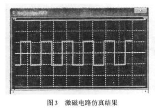 其中,Vp2是P2端口輸出電壓幅值的絕對值,此處應該是+24V。整個電路是對稱的,且R15=R20,當P2.9為低電平,P2.8為高電平時,P2的端口2無電壓輸出,端口1輸出+24V的電壓,Vref(+)值不變,如此周而復始輸出頻率為6.25Hz的的雙*性矩形波。用Multisim仿真結(jié)果如圖3所示。