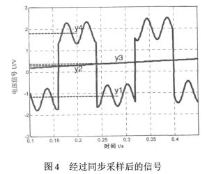 對于基線零點漂移,“正負差值法”是比較有效便捷的選擇,它不需要直接消除信號中的基線零點漂移,而是通過算法上去掉基線零點漂移對測量結(jié)果的影響。該系統(tǒng)中,激磁信號的頻率為6.25Hz,由于所測量的液體流速不會有明顯的突變,所以在信號的一個周期0.16s內(nèi),可以采用一個波峰減去波谷的均值來表示此時的流量信號,也即如圖3中|y4-y1|其中y4是從nT+T/4到nT+T/2采樣結(jié)果的算術(shù)平均值,y1是從到(n+1)T進行采樣結(jié)果的算術(shù)平均值。但是由于斜率零點漂移的存在,會出現(xiàn)如圖3中|y3-y2|的誤差,所以需要利用式(15)的結(jié)果對該誤差進行修正,修正后的結(jié)果也就是此時管道中液體感應出的電動勢為: