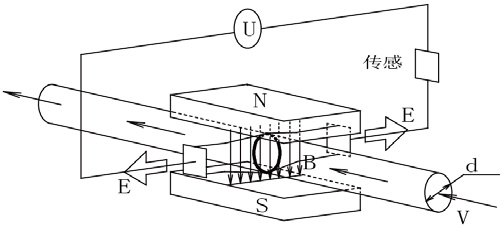 如圖,測量流量時,流體流過垂直于流動方向的磁場,導電性流體的流動感應出一個與平均流速成正比的電勢。其感應電壓信號通過兩個電*檢出,并通過電纜傳送至轉(zhuǎn)換器,經(jīng)過信號處理及相關運算后,將累計流量和瞬時流量顯示在轉(zhuǎn)換器的顯示屏上。