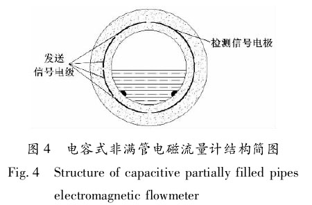 ②電容式非滿管污水廠出水用電磁流量計(jì)h。電容式非滿管污水廠出水用電磁流量計(jì)結(jié)構(gòu)簡(jiǎn)圖如圖4所示。、檢測(cè)信號(hào)電* 發(fā)送信號(hào)電