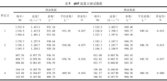 Φ15流量計(jì)測(cè)試數(shù)據(jù)如表5所示。