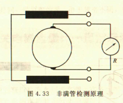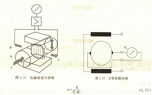 非滿管檢測也是基于電導(dǎo)率檢側(cè)的方法。在圖4.33所示的電磁流量傳感器中,增加了一個(或一對)非滿管檢測電*。當(dāng)導(dǎo)管內(nèi)液體滿管時,頂部電*與其他電*之間的電阻值很小;而當(dāng)存在非滿管情況時,頂部電*與導(dǎo)電液體之間有氣體阻隔,所以電*電阻顯著增大,從而做出非滿管判斷。
