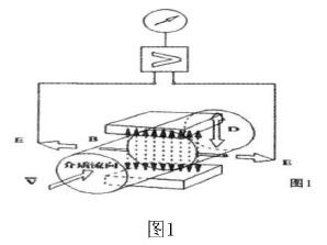 當(dāng)導(dǎo)電流體經(jīng)傳感器通道時(shí),導(dǎo)電流體流向垂直于磁力線(xiàn)方向,流體流動(dòng)時(shí)切割磁力線(xiàn),在導(dǎo)電流體中有感應(yīng)電勢(shì)E產(chǎn)生,感應(yīng)電勢(shì)與流速之間的關(guān)系式為:E=KBvD