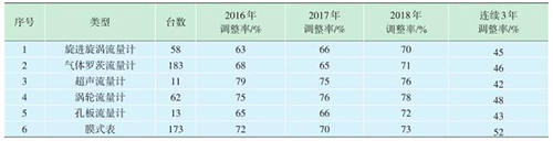 在2017年的工作基礎上,對2018年送檢的氣體流量計進行了抽查,并按不同類型進行了統(tǒng)計(表2)。