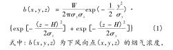 式中: b(x,y,z) = w × e(x,y,z),其中 e(x,y,z) 為二氧化硫濃度與循環(huán)流化床火炬氣流量計煙氣排放源煙氣強(qiáng)度的比例系數(shù);f 為平均風(fēng)速,m/s; w 為地面空氣內(nèi)煙氣排放強(qiáng)度;σ x 為橫向擴(kuò)散系數(shù)受環(huán)境穩(wěn)定度與下風(fēng)向距離因素的影響程度。式(3)中描述的是基于時間變化的循環(huán)流化床火炬氣流量計煙氣排放源煙氣排放強(qiáng)度計算模型。