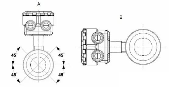 如果兩個(gè)測(cè)量電*處于 3 點(diǎn)鐘和 9 點(diǎn)鐘位置或與水平方向成 45 度以下角度,如 圖 3-4 左側(cè)所示,則傳感器電*的朝向正確。避免使傳感器的頂部與垂直位置成 90 度角(如 圖右側(cè)所示)的任何安裝朝向。