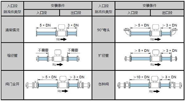 管路必須完全充滿液體。保證管路始終充滿液體至關(guān)重要,否則流量顯示會(huì)受到影響,而且還會(huì)出現(xiàn)測量錯(cuò)誤。管路結(jié)構(gòu)的設(shè)計(jì)必須要保證測流管始終充滿流體。當(dāng)流體有分流或含有固體顆粒沉淀物時(shí),建議使用垂直安裝。但采用垂直安裝時(shí),要遵循流體從下到上的走向,以保證管路充滿流體。