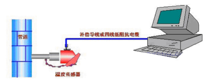 圖1 利用補(bǔ)償導(dǎo)線或著四線低阻抗導(dǎo)線連接到監(jiān)控室的方法