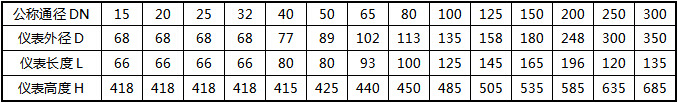 1.儀表口徑(mm):15、20、25、40、50、65、80、100、125、150、200、250、300